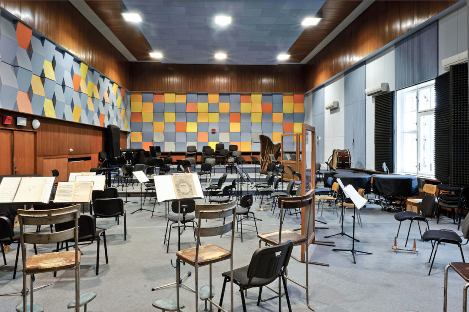Für die Arbeit im Studio, CD-Aufnahmen, Filmmusikaufnahmen u. a. verwenden wir das STUDIO „A“ des Tschechischen Rundfunks – ein Komplex mit Regie, einem großen Tonstudio und Arbeitsräumlichkeiten, geeignet insbesondere für Aufnahmen von Tanz-, Jazz- und Blasmusik mit größerer Besetzung, aber auch für Kammermusikbesetzung, kleine Gruppen, Solisten und Chöre, Filmmusik mit großer symphonischer Besetzung, bis zu einer Größe von rund 100 Musikern für jedwede mehrspurige Musikproduktionen.