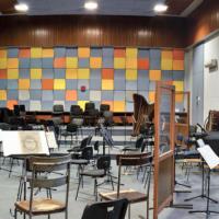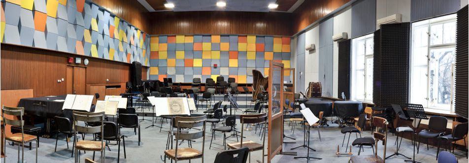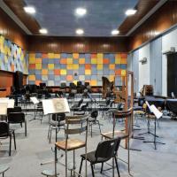 The mixing and mastering studio with a large hall (1200 m3, reverberation 0.75 s) and an operating backstage is appropriate especially for recording of dance, jazz and brass music in big casts but also for small groups, chamber ensembles, soloists, choirs, film soundtracks in the symphony cast and any multi-track music production.